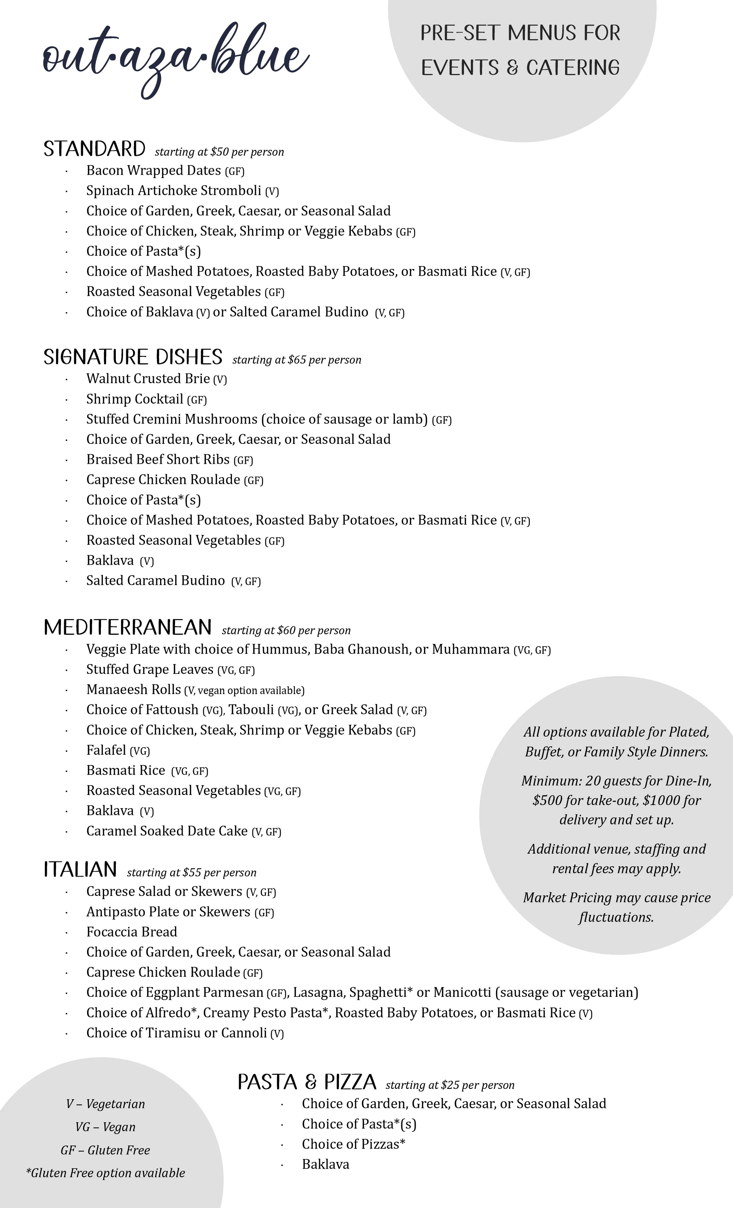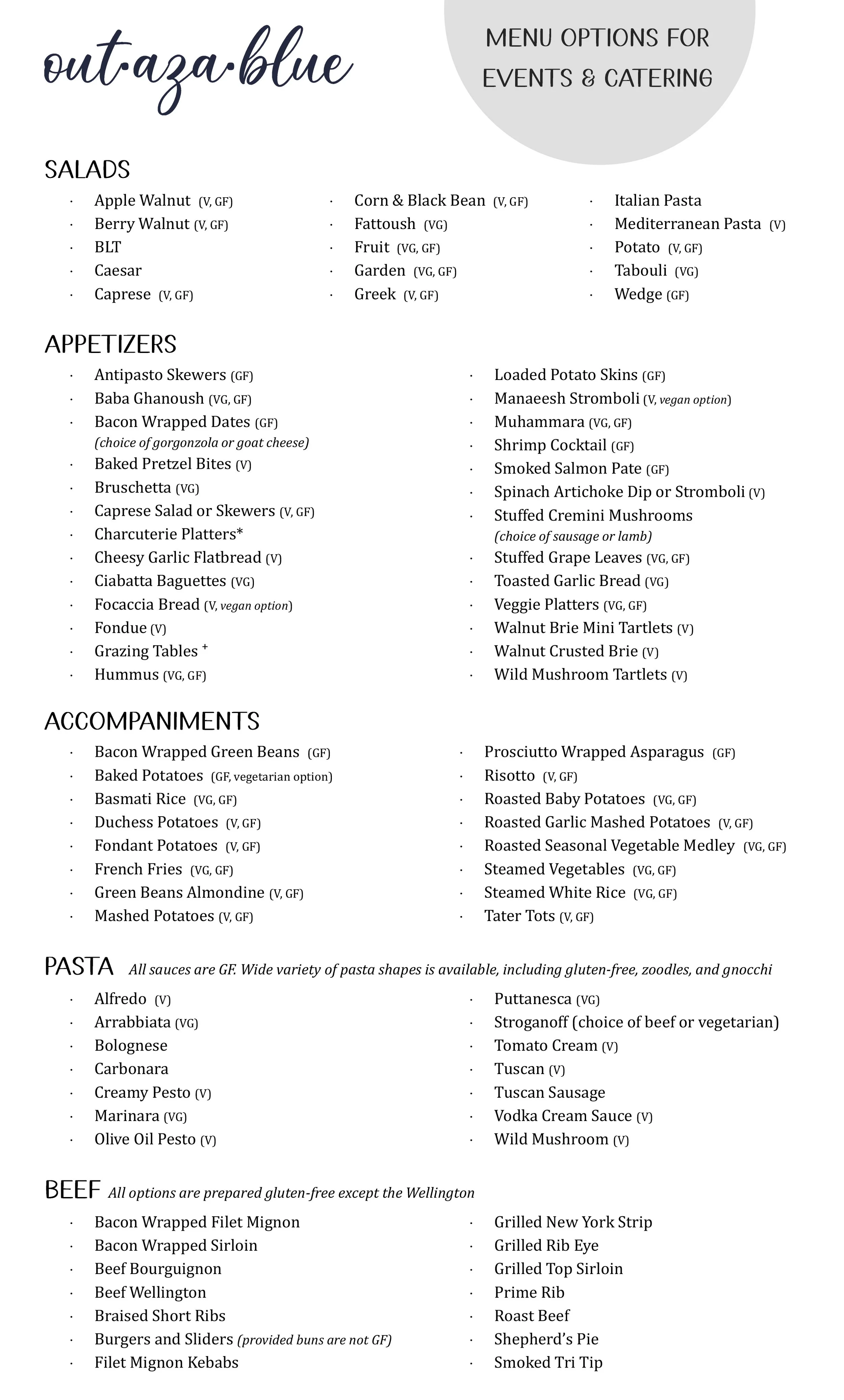 Please note this is just a small sampling of the dishes we offer and have prepared.
