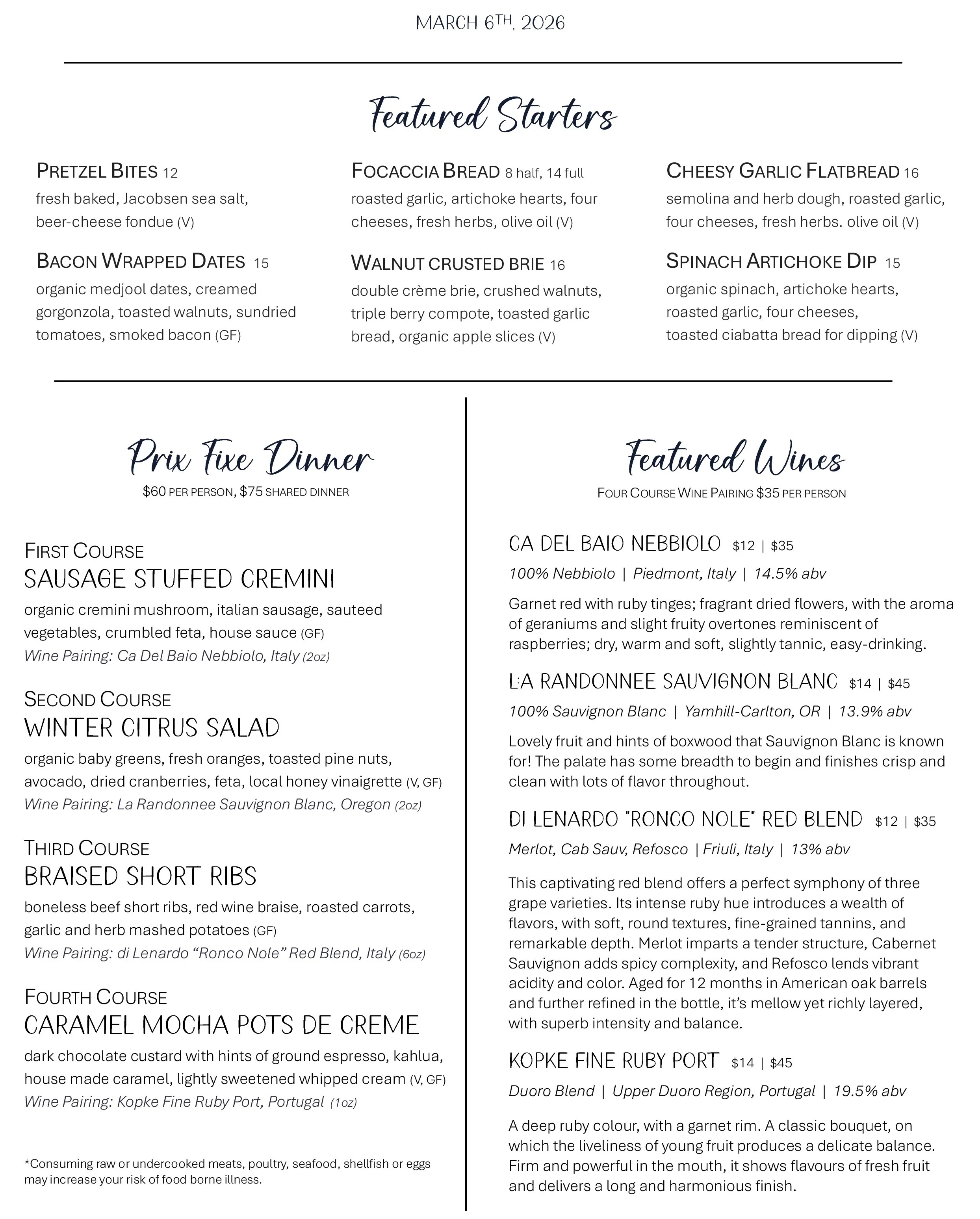 Prix Fixe Dinner
