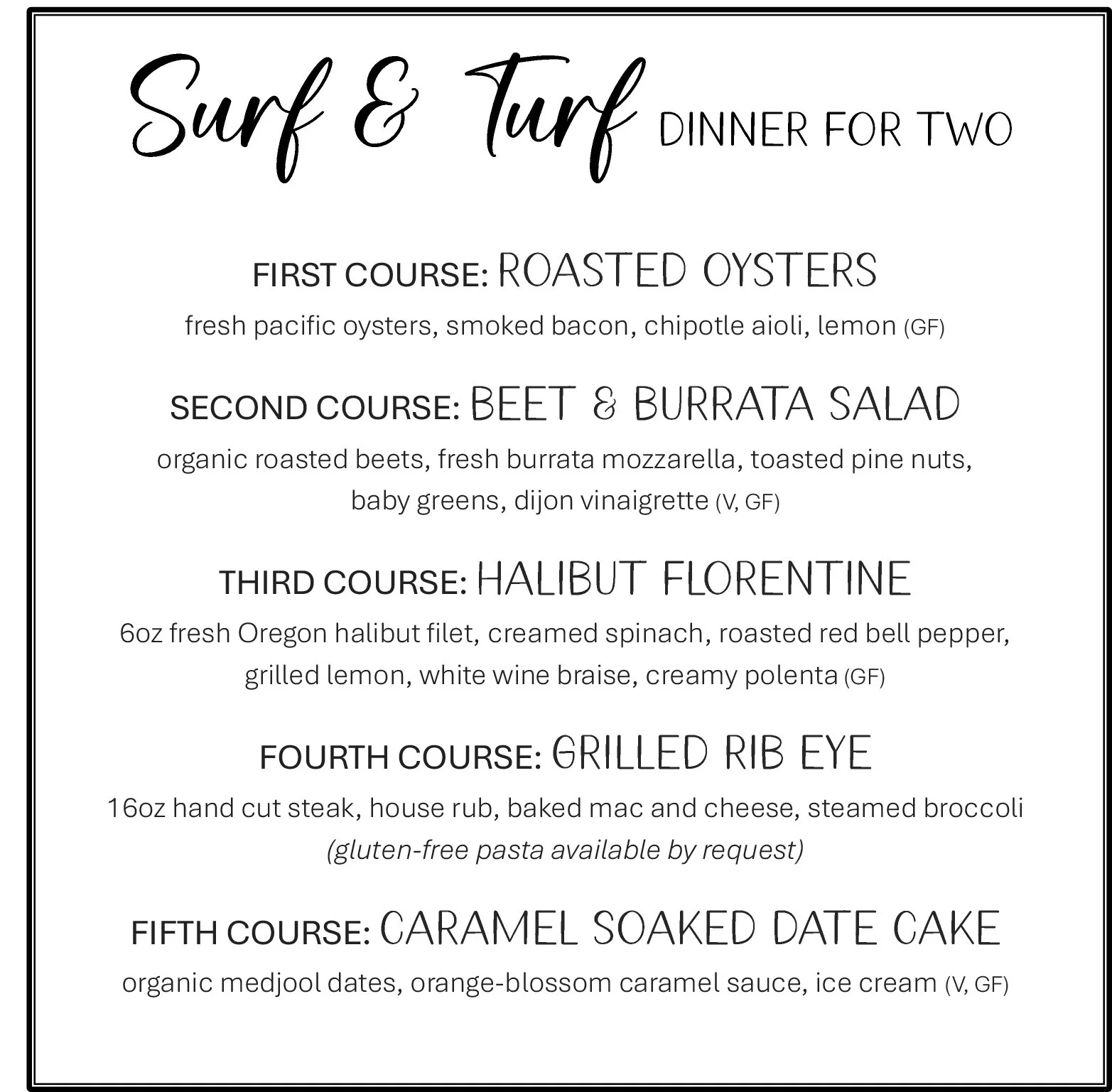 $125 per couple. Each dinner includes an entree-sized portion of each course served family style, intended to be shared between two people.