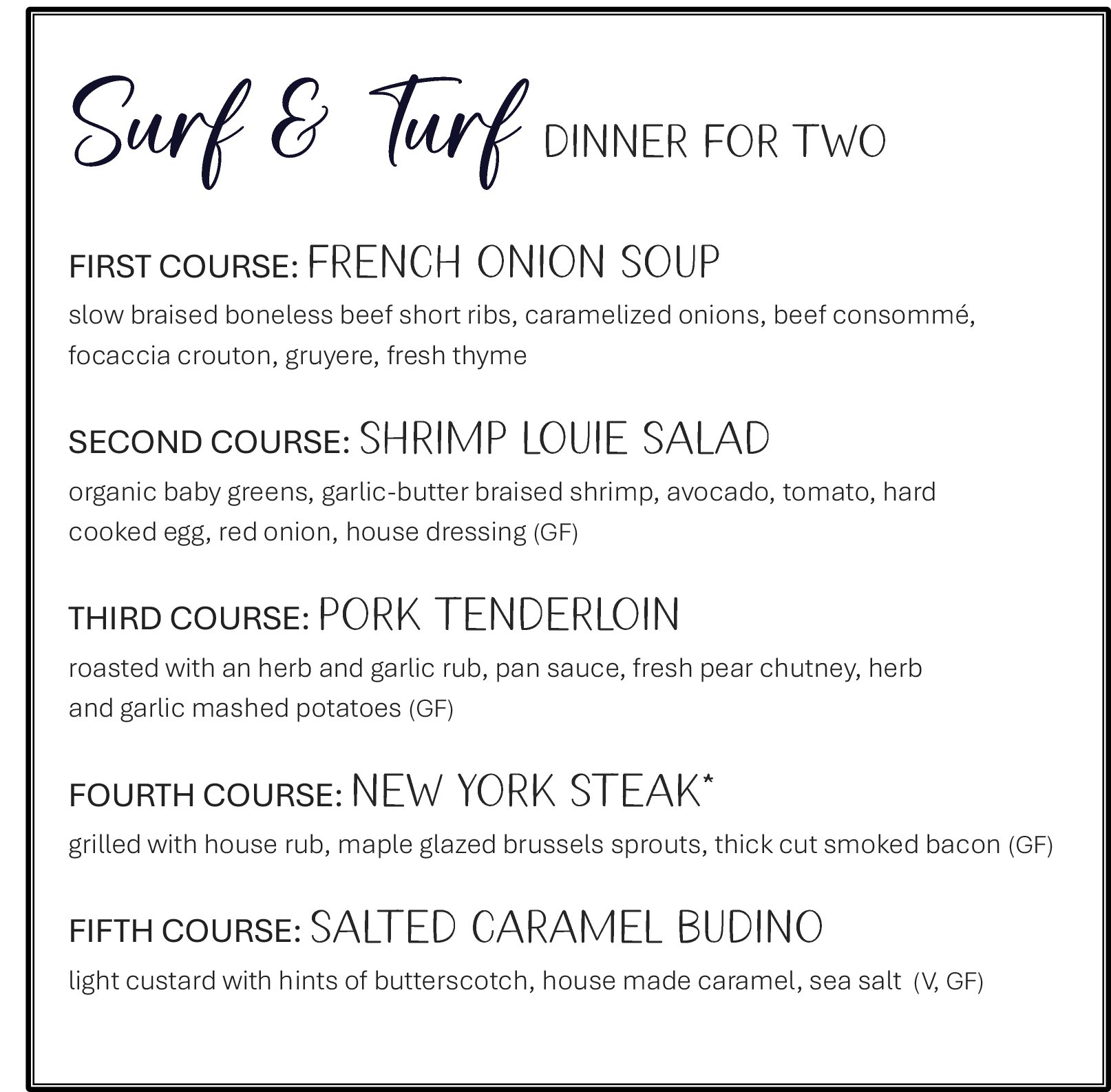 Each dinner includes an entree-sized portion of each course served family-style, intended to be shared between two people.