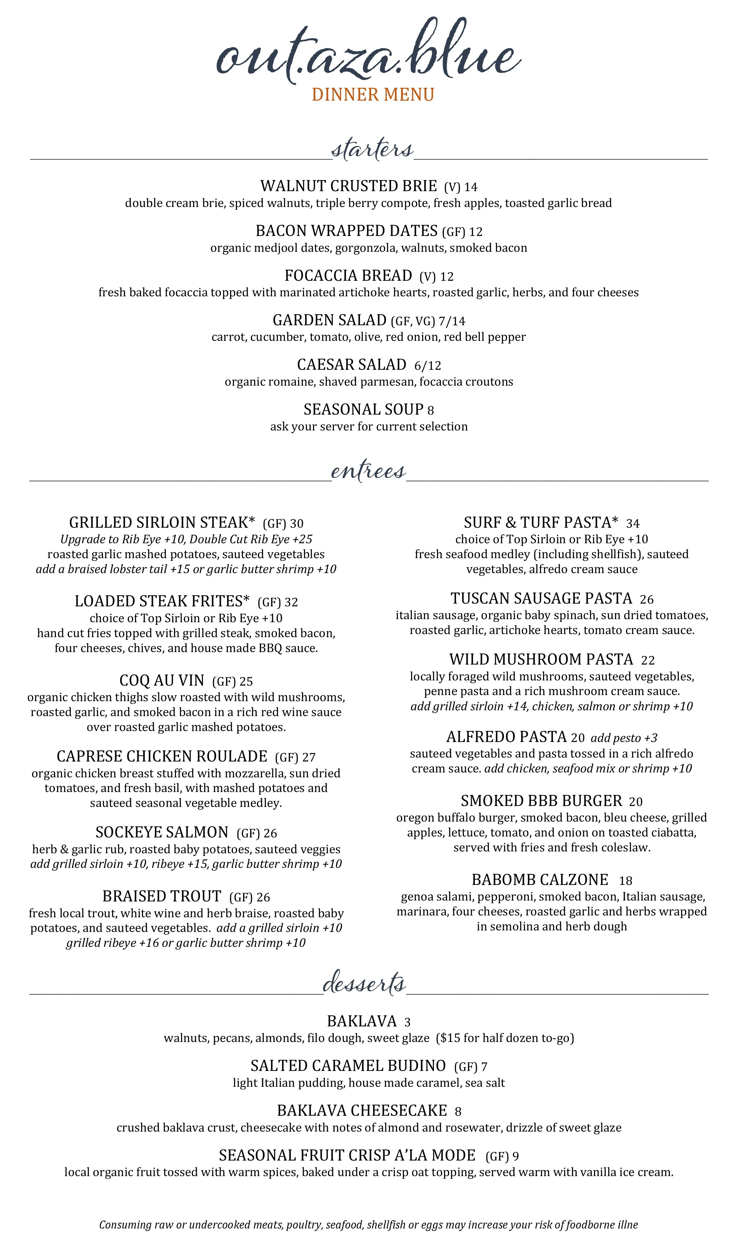 Dinner Service Thursday, March 30, 2023 4:00 PM 8:00 PM 16:00 20:00 57625 NW Wilson River Hwy Gales Creek, OR 97117 (map) Google Calendar ICS Dinner served between 4pm-8pm Make a reservation Reserve a table
